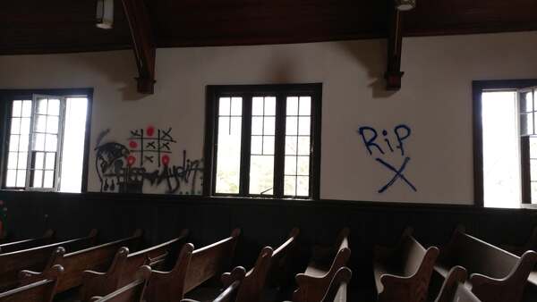 Abandoned juvenile detention center built in 1909 and a church across the street