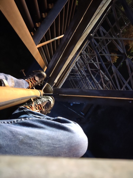 Climbed the drop tower. This thing was janky af and there was a section of ladder missing. Where did it go?