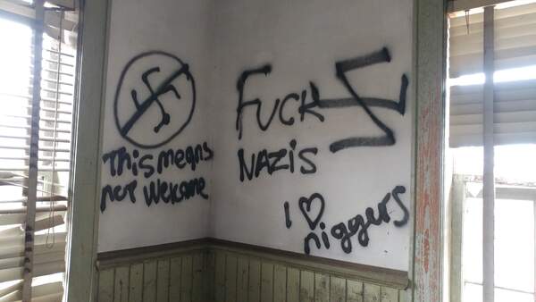 Only a few weeks earlier the government put up a new bigass barbed wire fence around every building to keep faggots like us out. Every single fence already had a big hole cut in multiple places. I really don't know what they were expecting to accomplish when you can easily cut through the chain link fence with a 12 dollar pair of linemans pliers from the home depot.